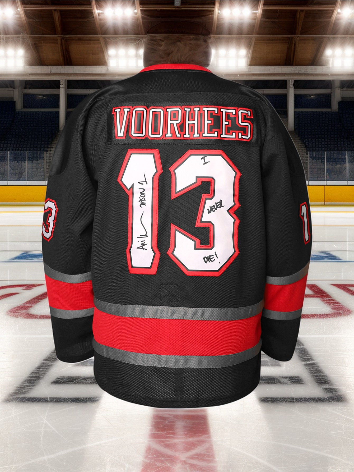 1pc Men'S Black Ice Hockey Jersey Sweatshirt - Polyester V-Neck with Embroidered Alphabet & Number 13, Loose Fit Long Sleeves, Breathable Knit Fabric for Sports & Casual Wear, Four Seasons