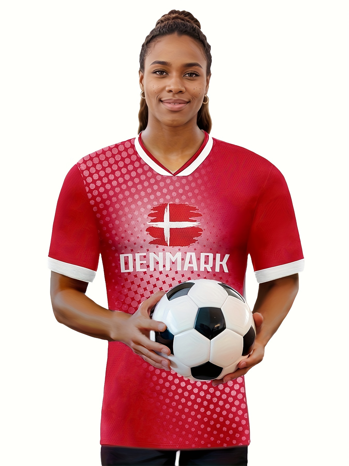 Women's Large Size Professional Sports Fabric Creative Pattern Print Denmark Home Soccer Jersey T-shirt, Soccer Jersey Flag Uniforms Shirts Breathable And Lightweight, Moisture-Wicking, As Gifts For Sports Fans