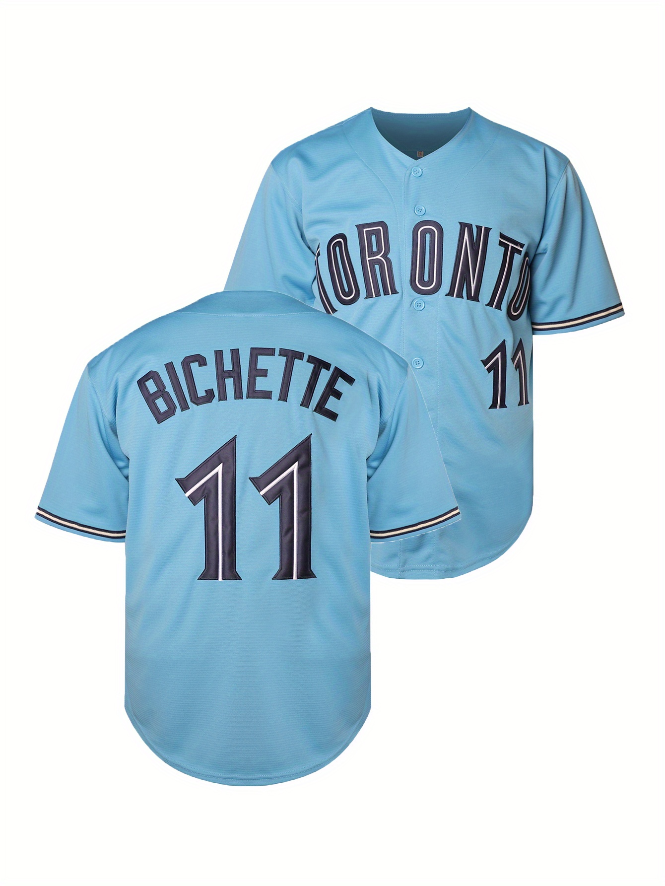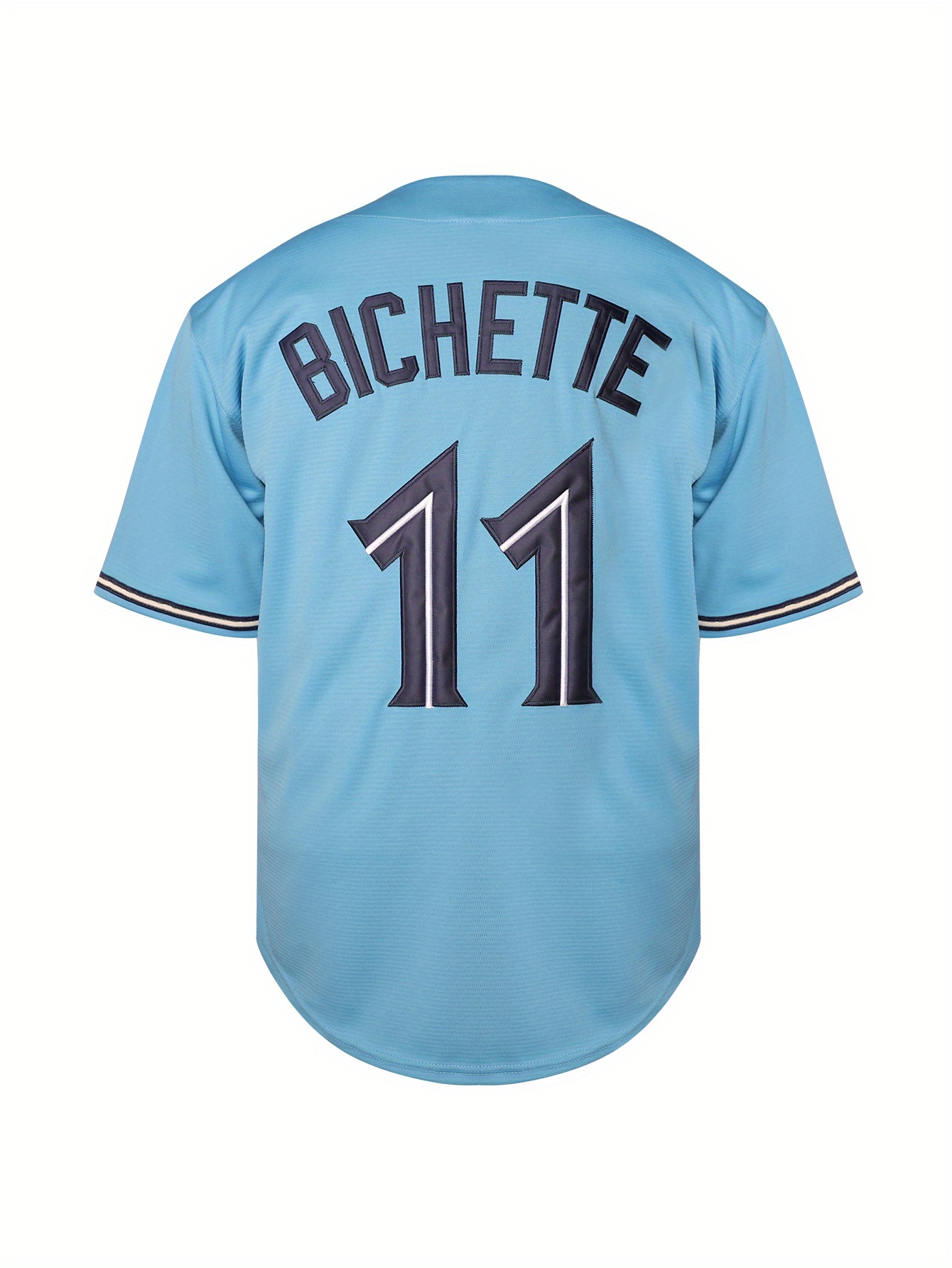 Men'S #11 Blue Baseball Jersey, Embroidered Short-Sleeve Baseball Jersey, V-Neck Loose Button-Up Shirt, a Comfortable Top Suitable for Training And Games.