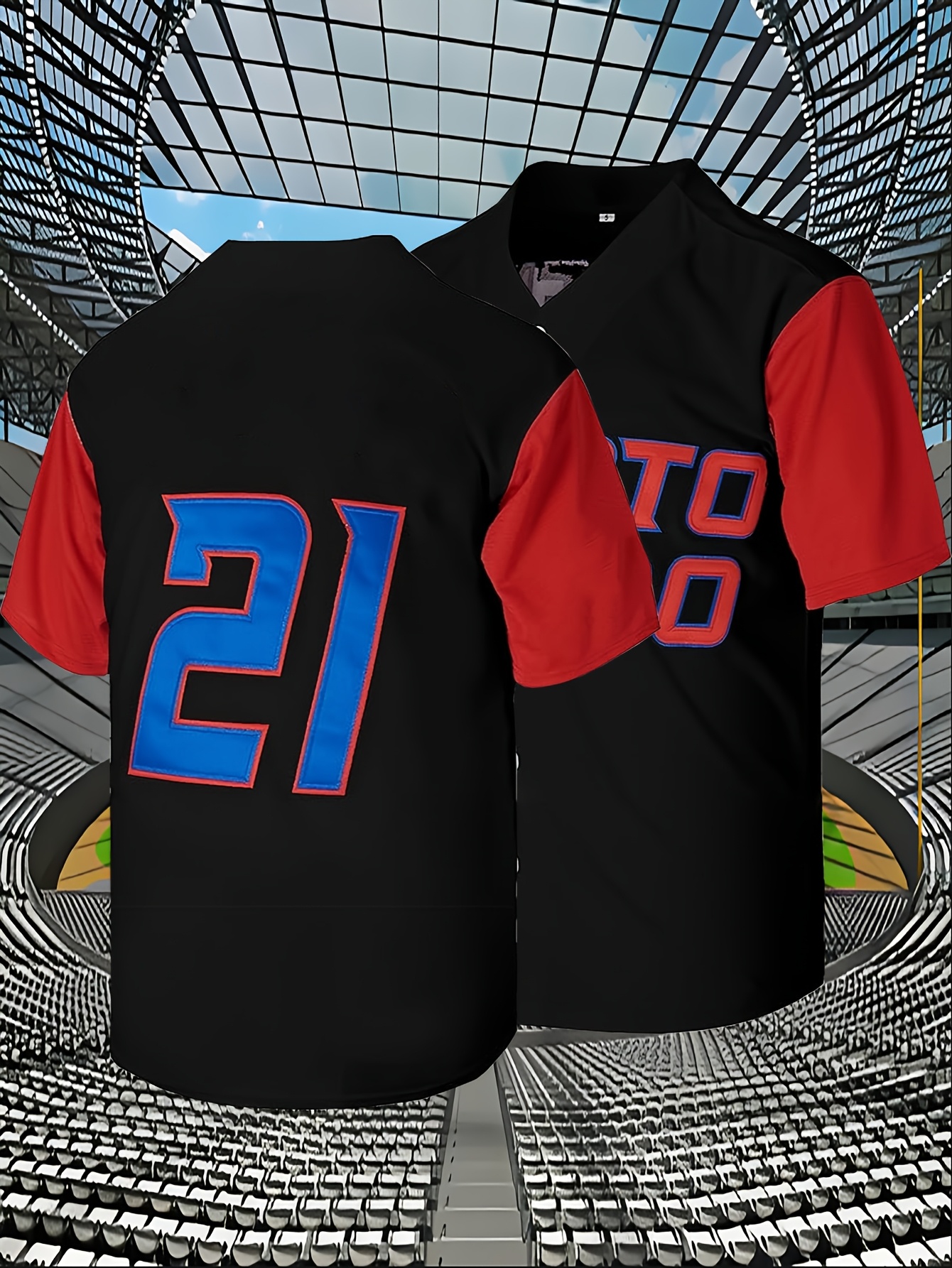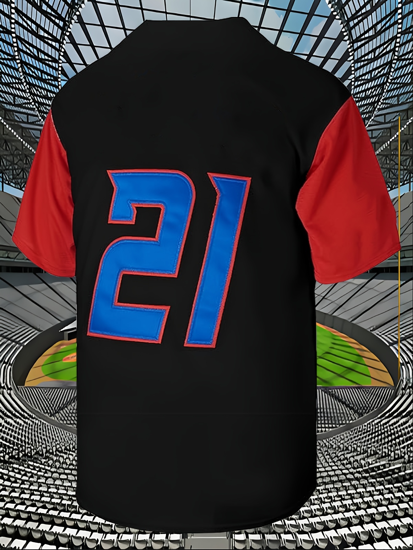 Men's #21 Embroidered Baseball Jersey - Breathable V-Neck, Loose Fit, Polyester Fabric, Perfect for Street Sports, Beach Outings & Casual Wear, Sizes S-3XL