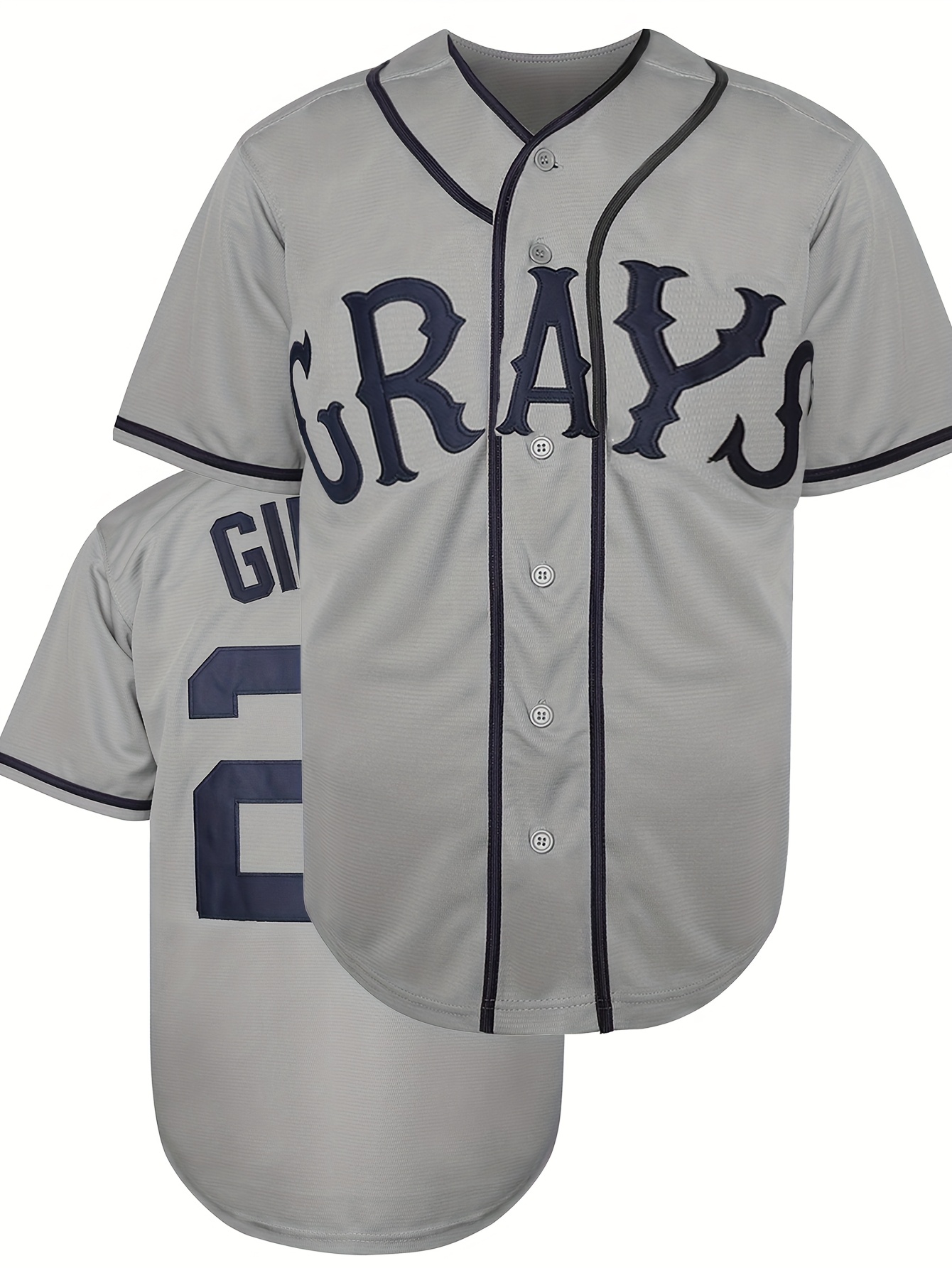 [Durable Build] Men's Retro #20 "Grapes" Embroidered Baseball Jersey - Light Grey & Navy Blue, V-Neck, Button-Up, Loose Fit, Polyester, S-3XL, Perfect for Team Sports, Outdoor Activities & Casual Wear