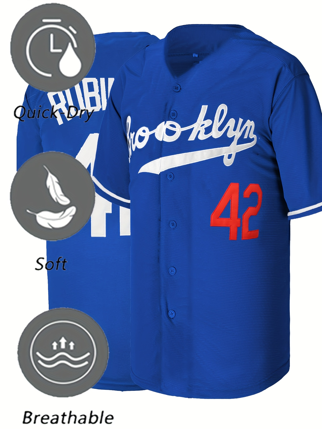 Hot #42 Blue Baseball Jersey Stitched Polyester Men'S Retro Baseball Shirt Button Short Sleeved Baseball Top S-3XL Hip Hop Clothes