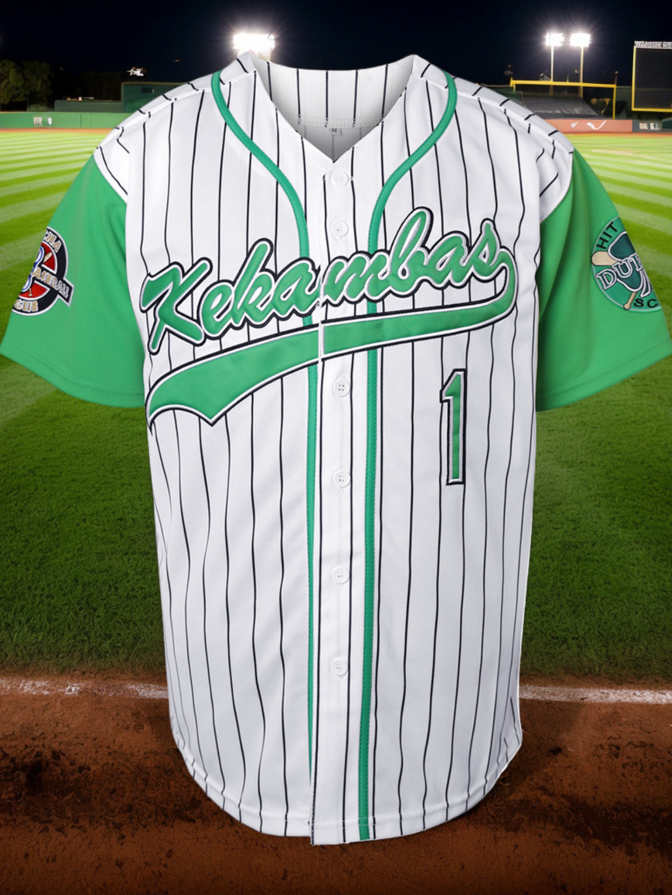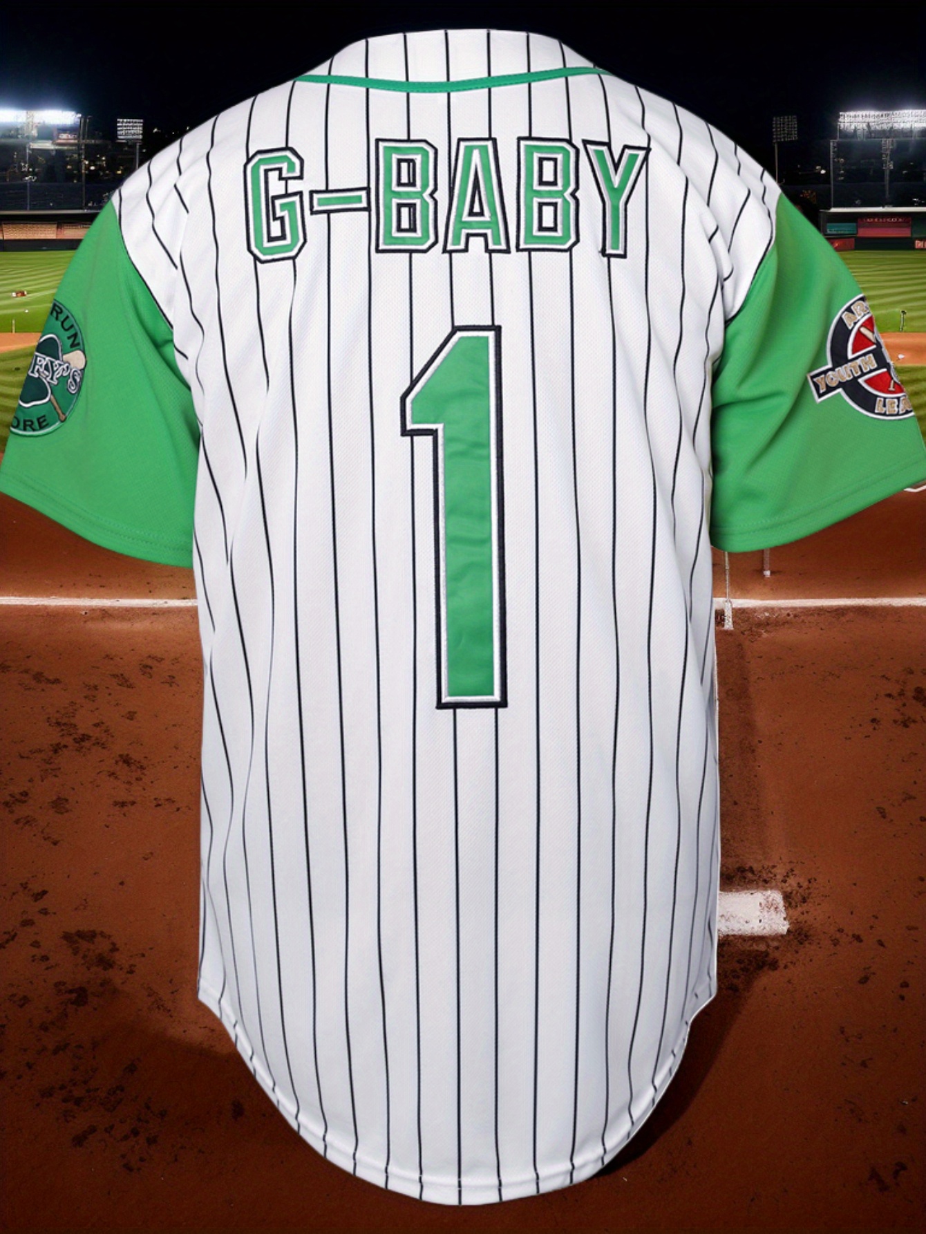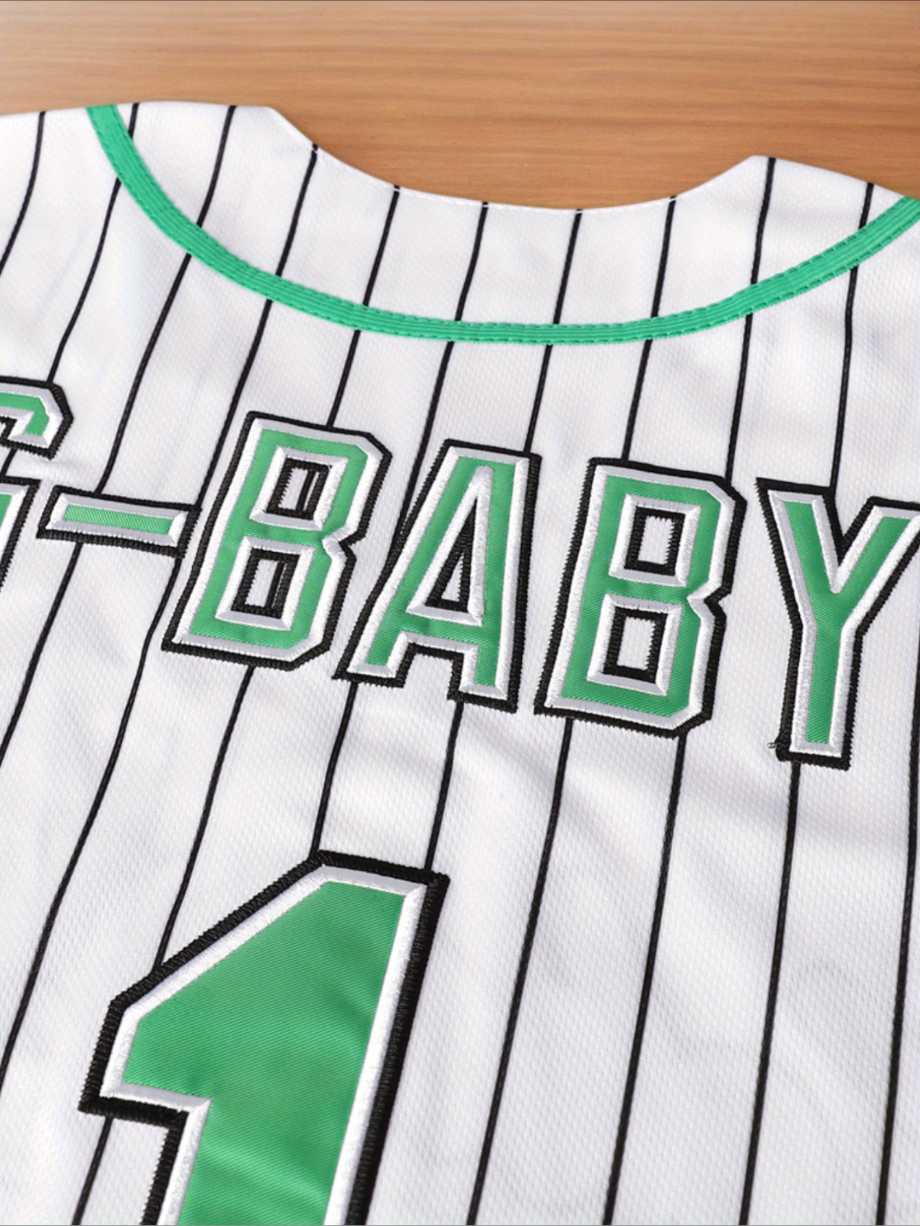 Men'S #1 White And Green Striped Baseball Jacket, Embroidered Short-Sleeve Baseball Jacket, V-Neck Loose Button-Up Shirt, Comfortable Top Suitable for Training And Games