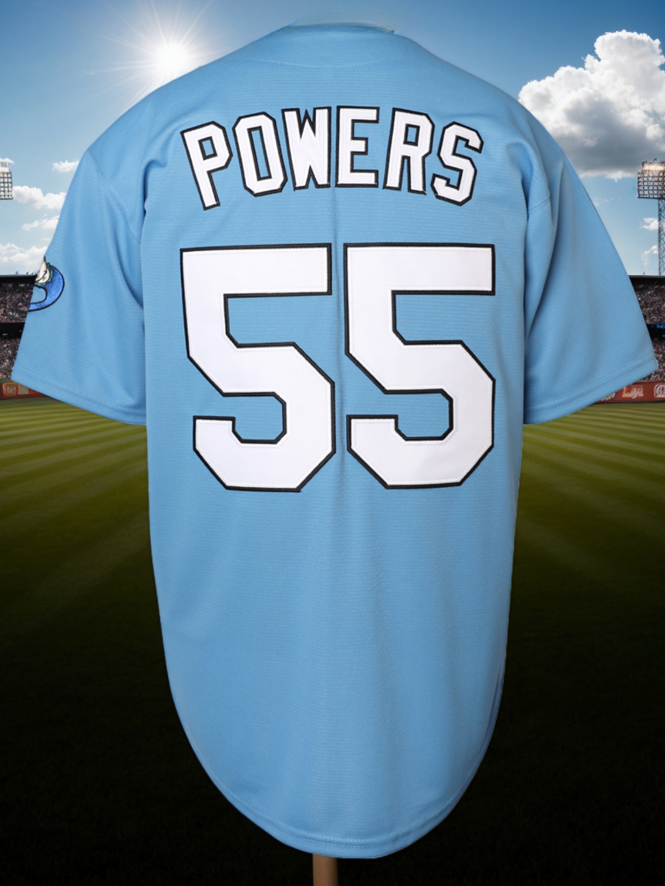 Men's #55 Blue Embroidered Baseball Jersey - V-Neck, Short Sleeve, Lightweight Polyester, Button-Up Shirt with