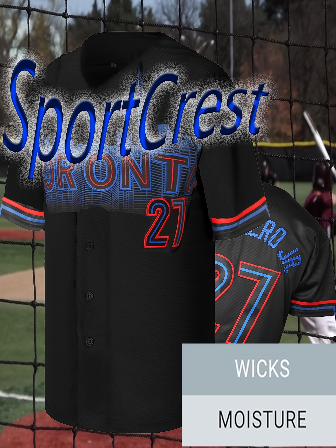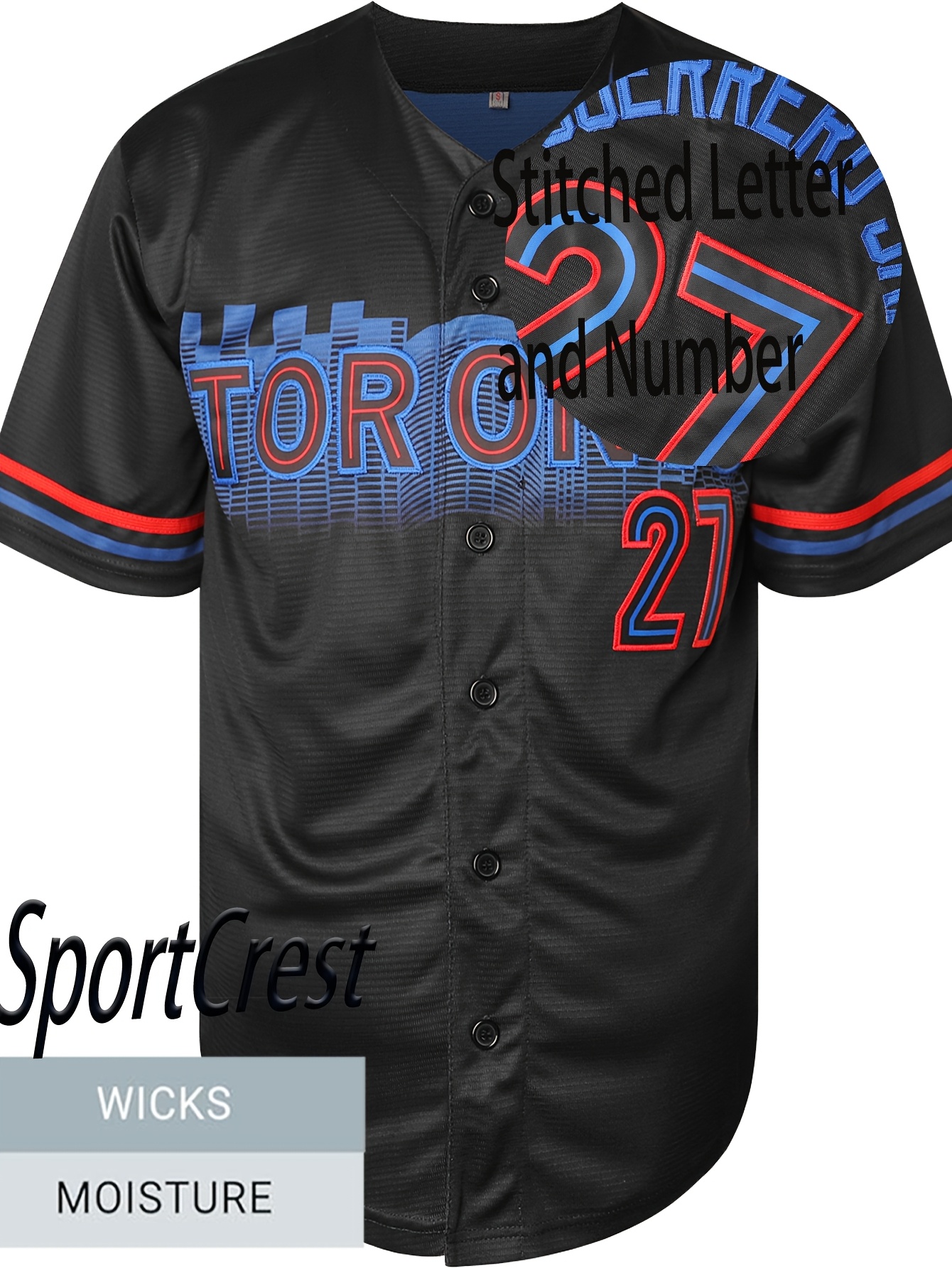 Men's Retro Baseball Jersey Number 27 - Black Polyester V-Neck Loose Fit with Full Embroidery, Moisture-Wicking & Machine Washable - All-Season Casual & Sports Wear (S-3XL), Outdoor Activity Apparel | Sporty Look | Durable Embroidery, Best for Christmas
