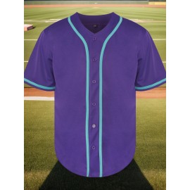 Men'S Solid Color Baseball Jersey, V-Neck Loose Button-Down Shirt, Smart Casual Outdoor Light Stretch Baseball Top