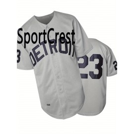 23 Grey Baseball Jersey Stitched Polyester Men'S Retro Baseball Shirt Button Short Sleeved Baseball Top S-3XL Hip Hop Clothes