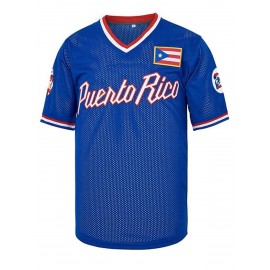 21 Puerto Rico baseball jersey button up shirt men's jersey embroidered men's jersey retro short sleeved V-neck casual sportswear loose game and party