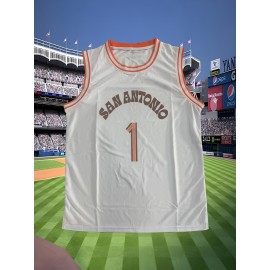 Men's #1 San Antonio Basketball Jersey - White Sleeveless Sports Shirt for Training, Competition & Team Activities, S-XXXL, Polyester, Loose Fit, Machine Washable, Casual Sportswear | Casual Style Jersey | Polyester Fabric