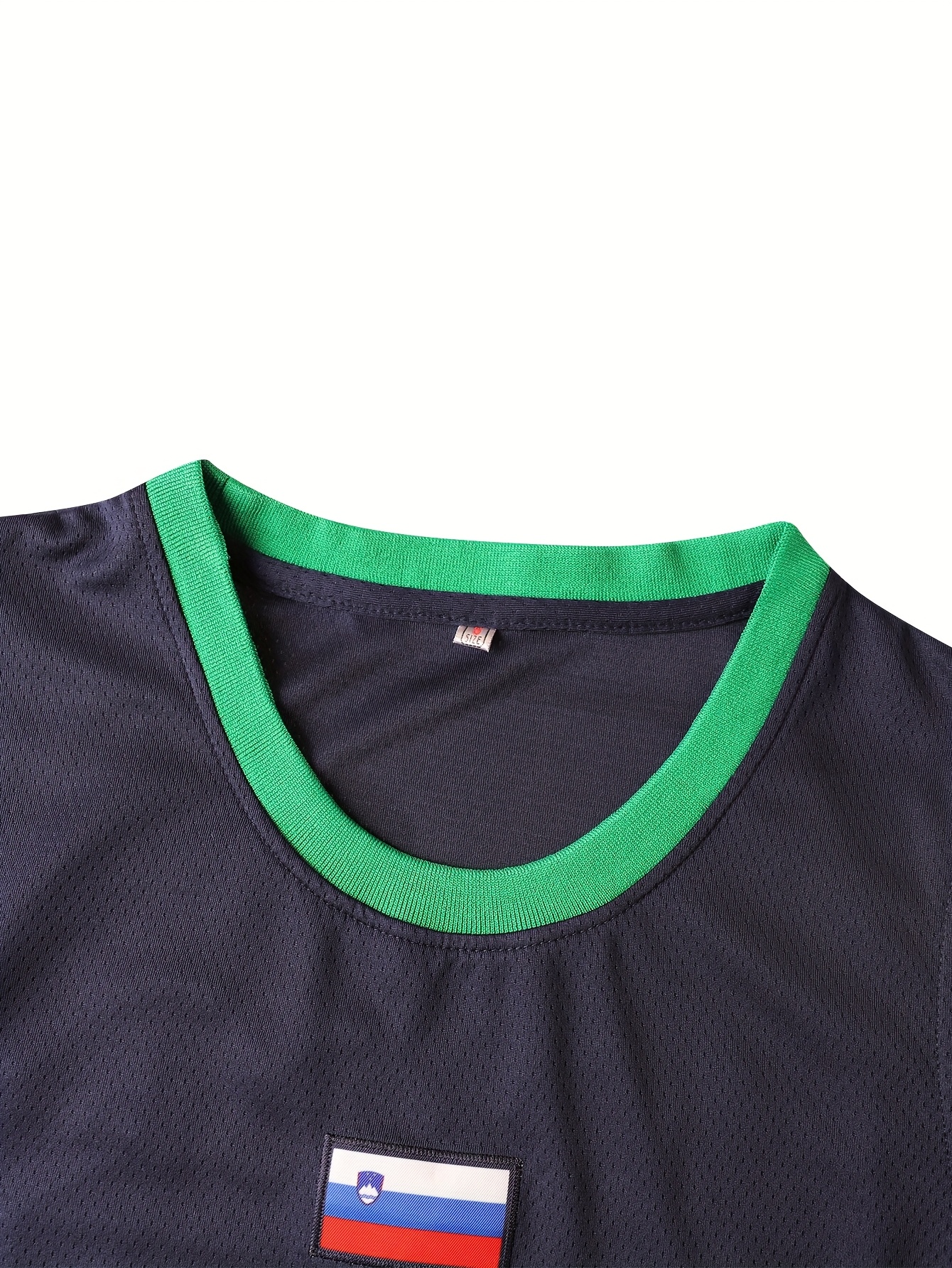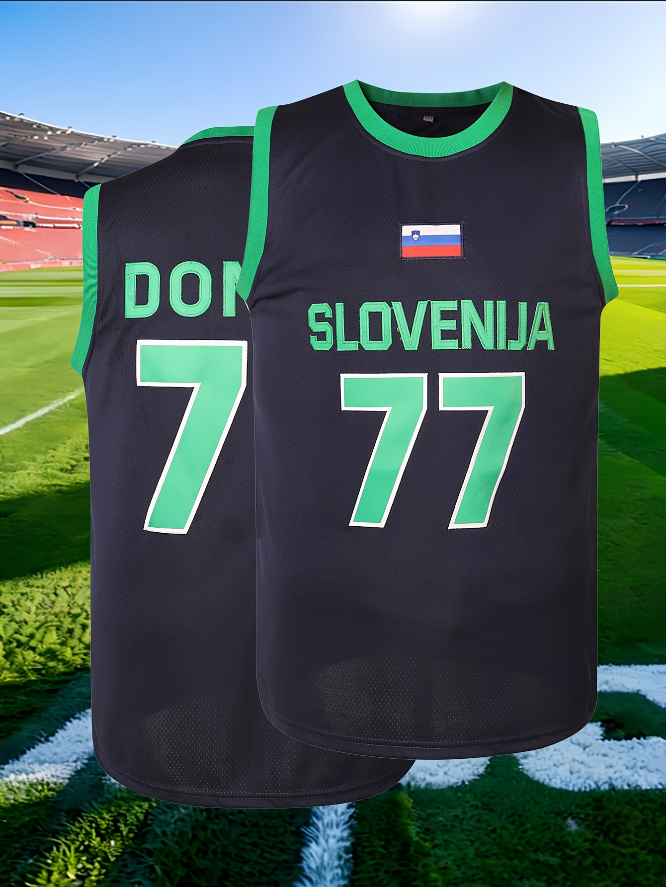Men's Basketball Jersey #77 - Navy Blue Slovenia National Team Design with Flag Patch, Loose Fit Breathable Fabric for Training, Team Sports & Casual Wear (S-XXXL), Team Apparel | Casual Jersey | Detailing, Basketball Gear
