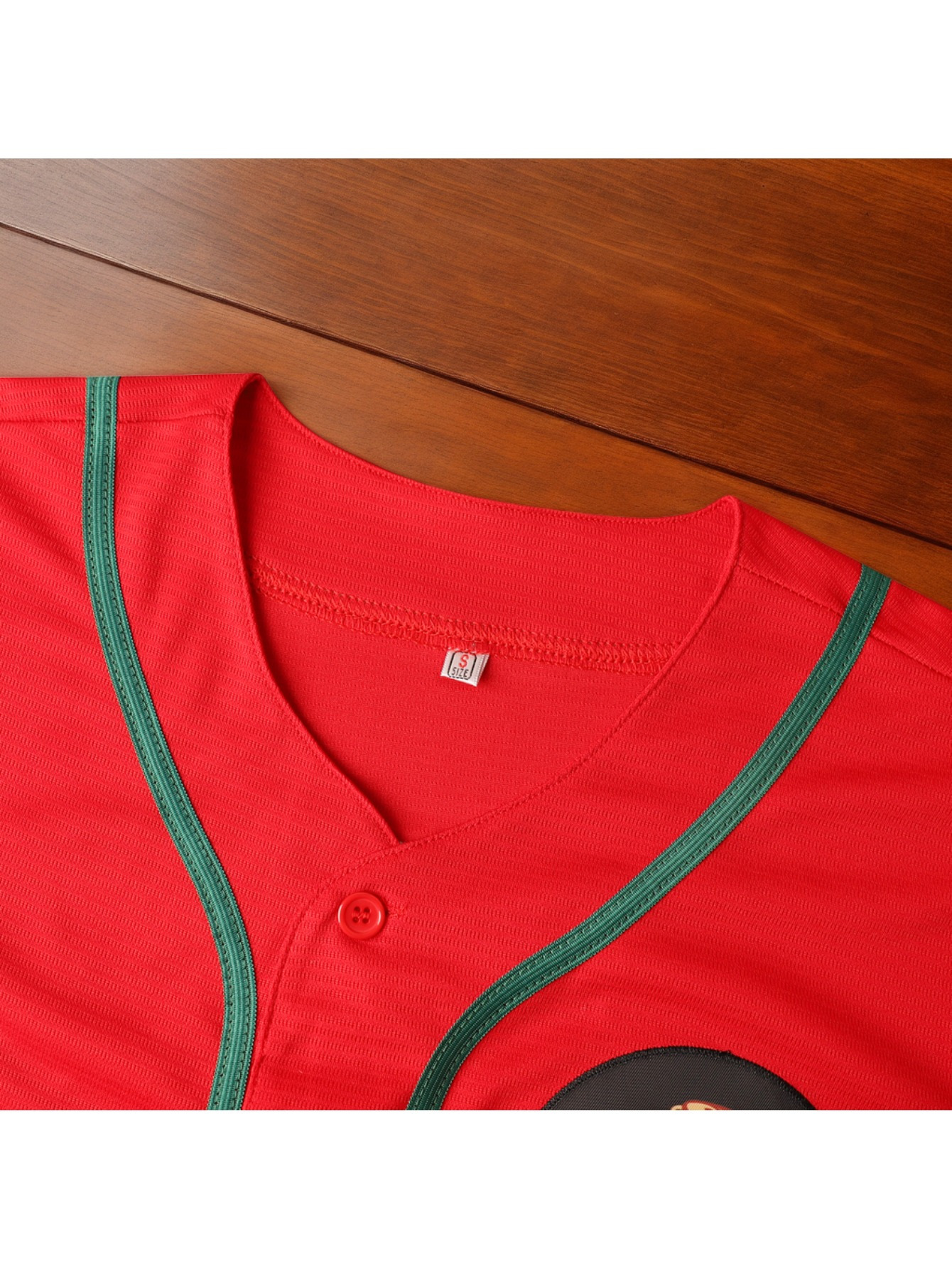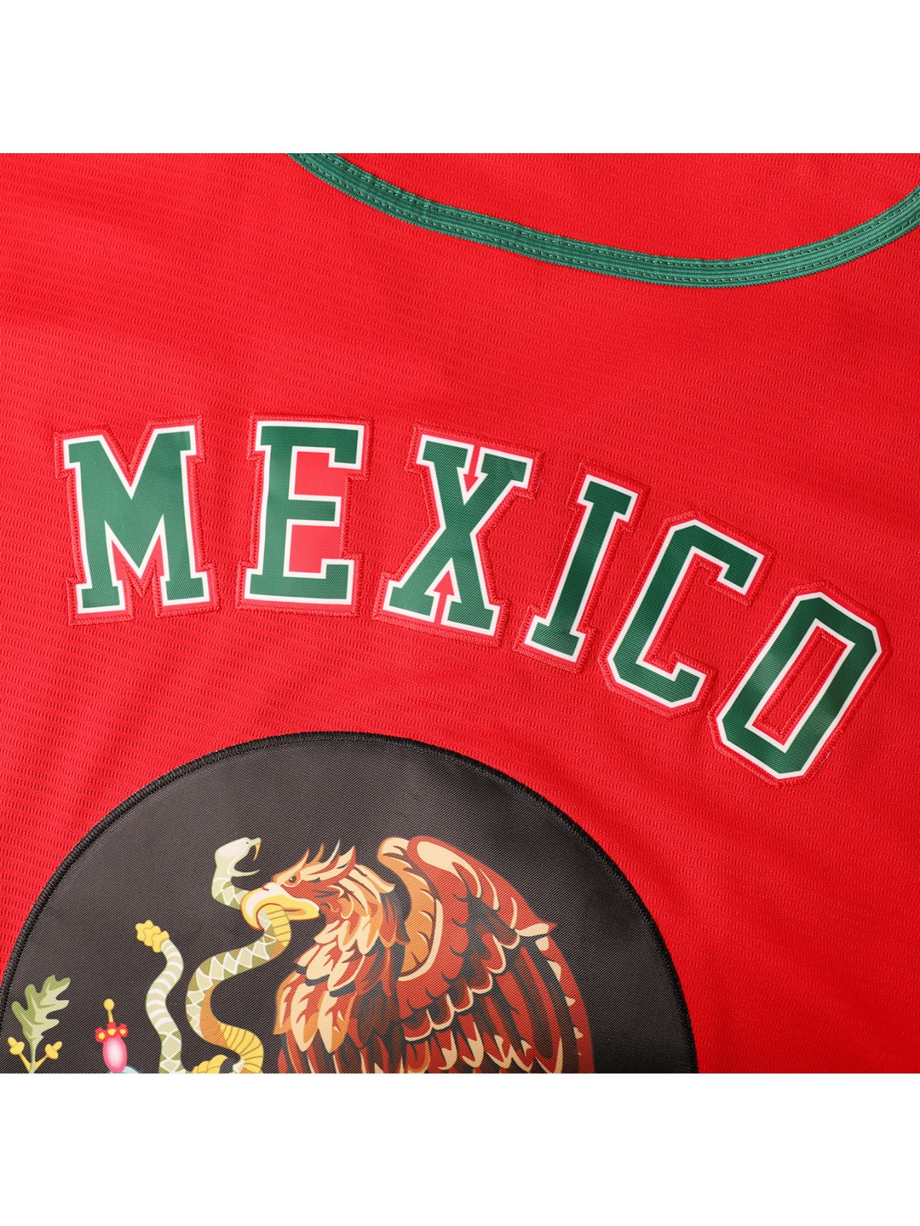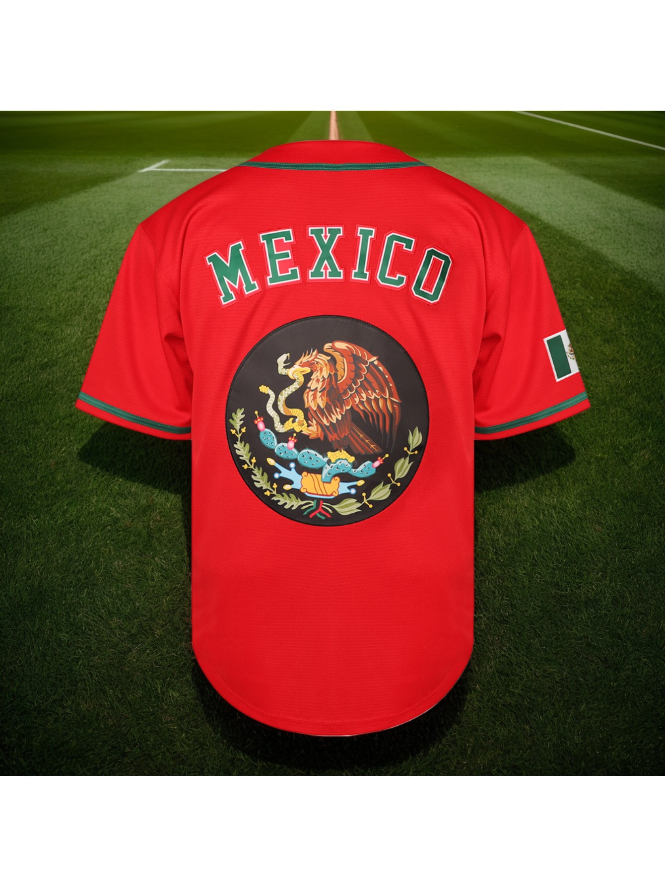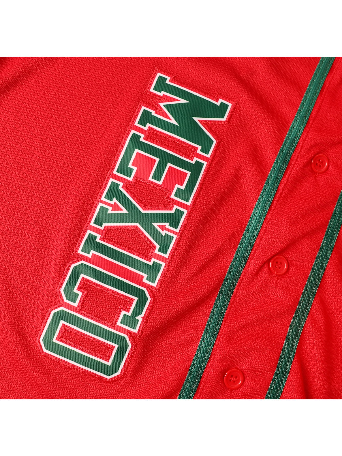 Men'S Polyester Baseball Jersey, Mexico-Themed Embroidered V-Neck, Slight Stretch Knit Fabric, Four Seasons Sports Shirt, for Casual, Training, Baseball, and Team Sports Events