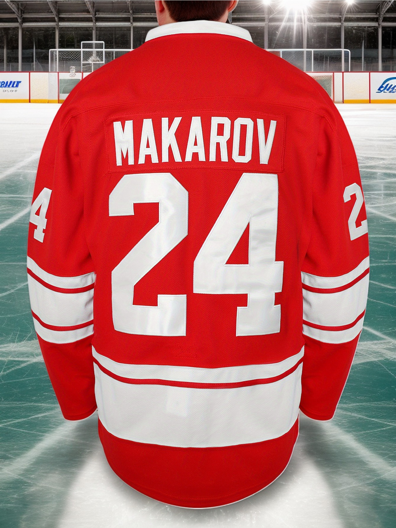 Men's Vintage #24 Embroidered Ice Hockey Jersey - Red and White, Breathable Polyester, Classic V-Neck Captain's Sweatshirt, Machine Washable, Ideal for Sports & Casual Wear