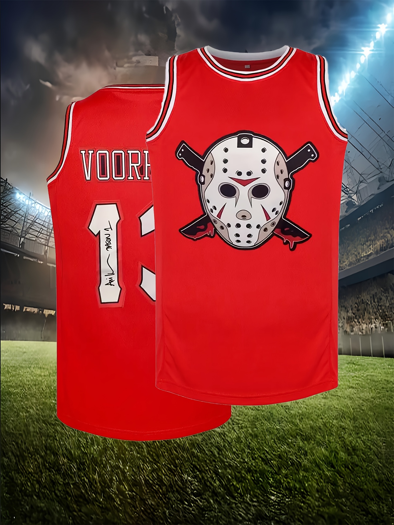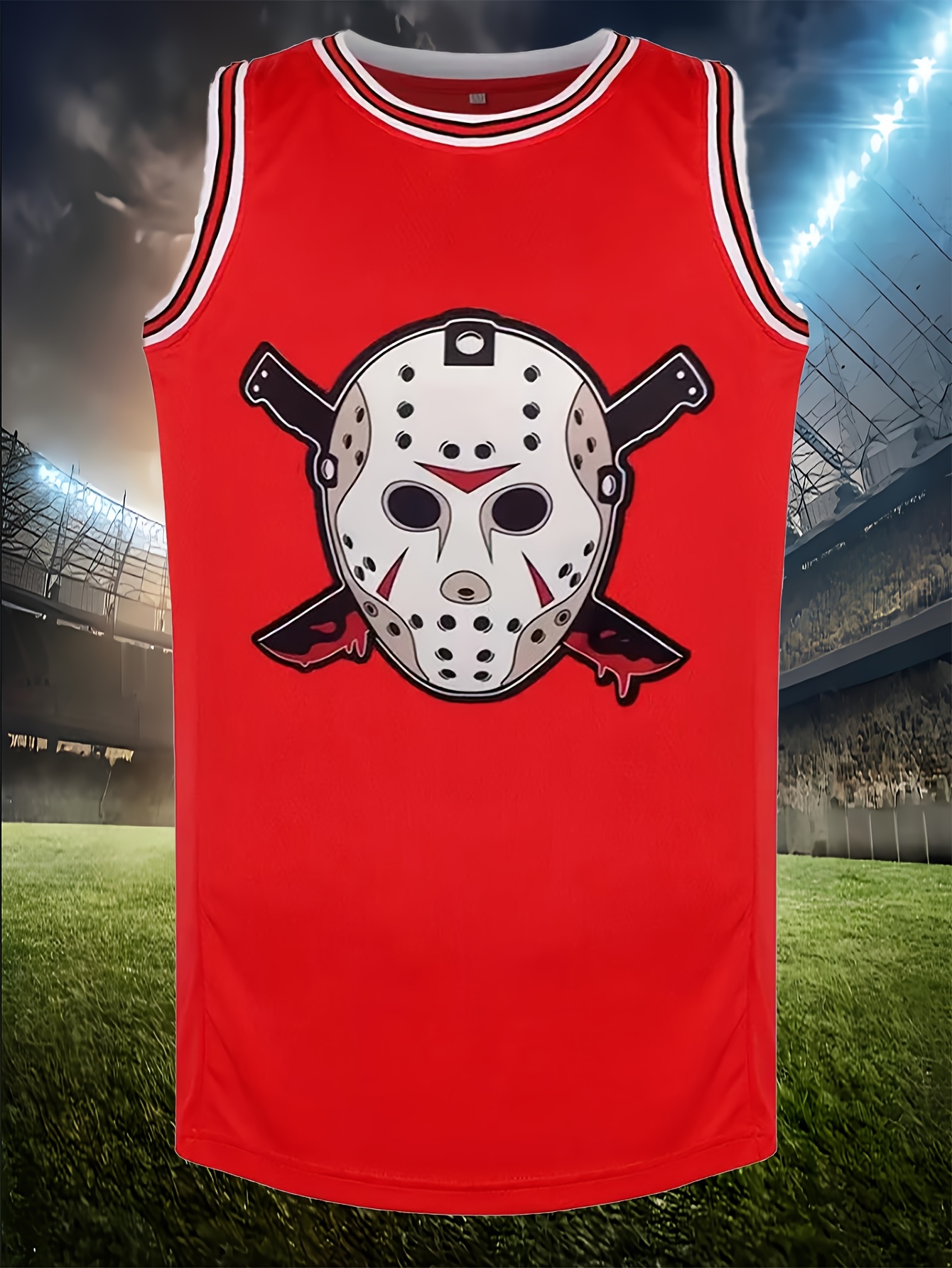 [Party Highlight] Men's #13 Basketball Jersey - Embroidered Polyester Knit Sleeveless Shirt, Loose Fit for Team Sports, Training & Casual Wear, Sizes S-XXXL, Party Sports Outfit | Skull Graphic Jersey | Glossy Finish Top, Best for Christmas