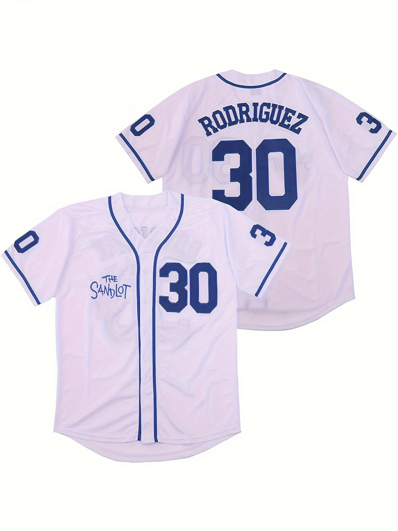 No.30 white blue baseball jersey button up shirt sportswear women's baseball jersey embroidery