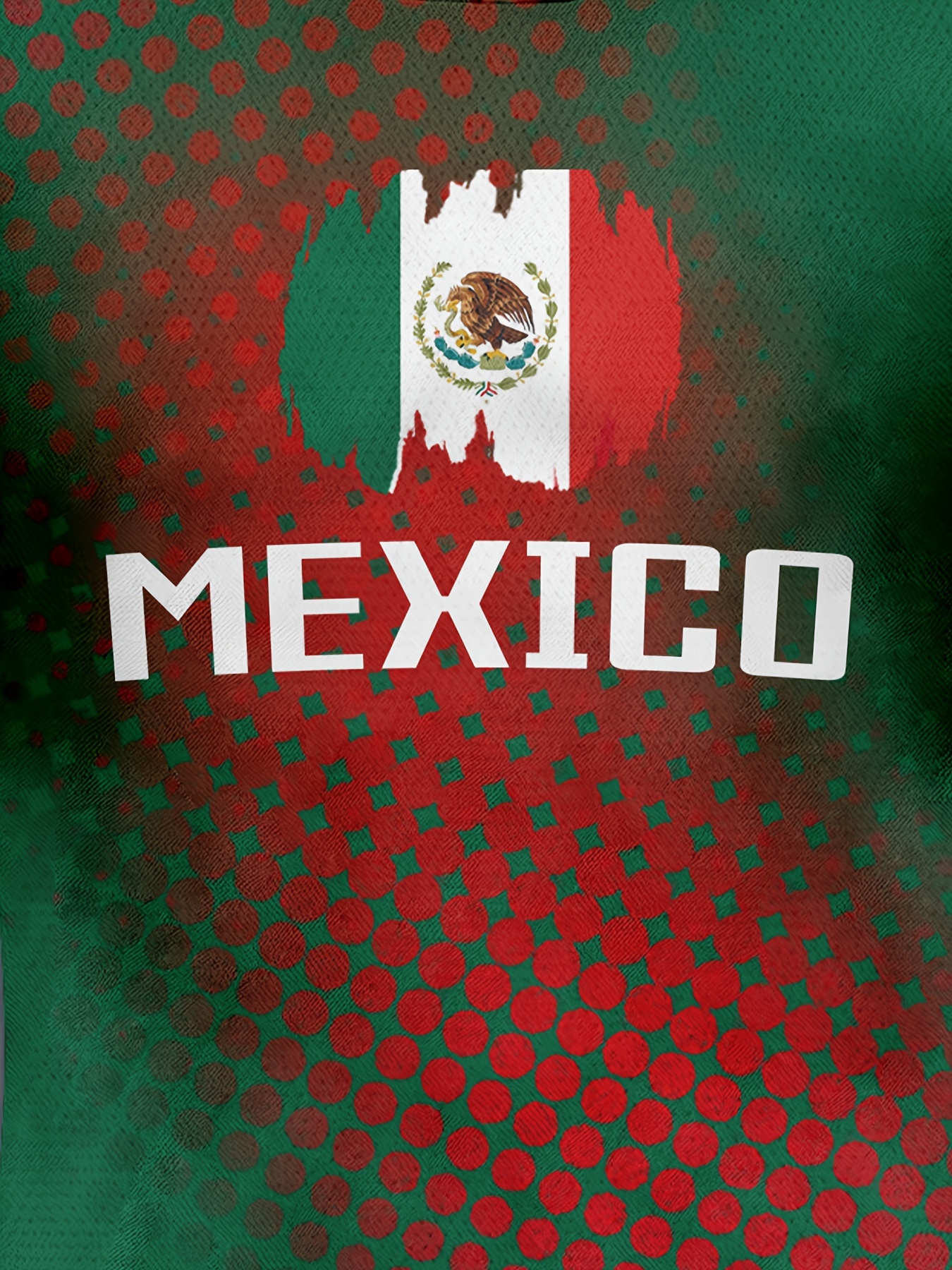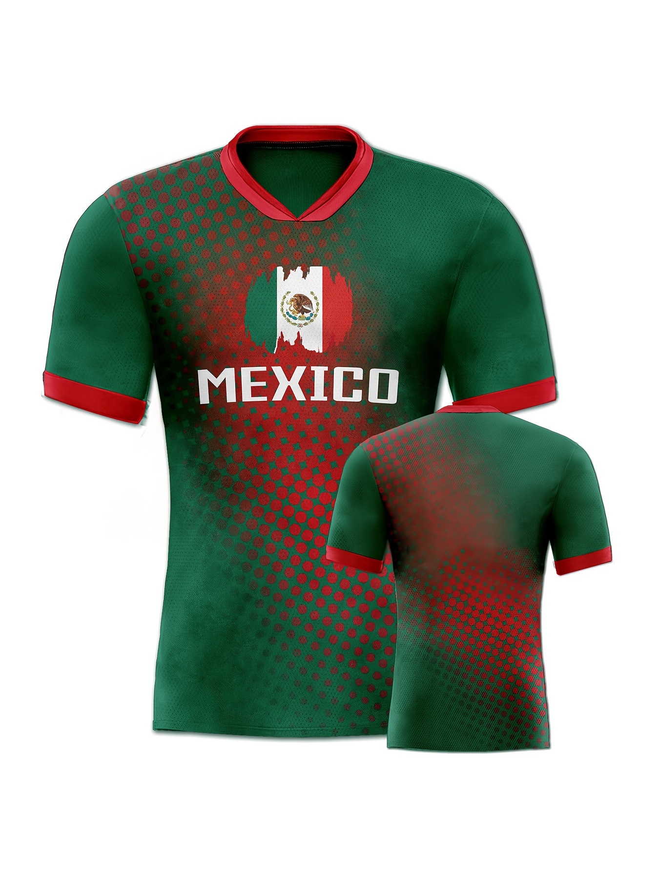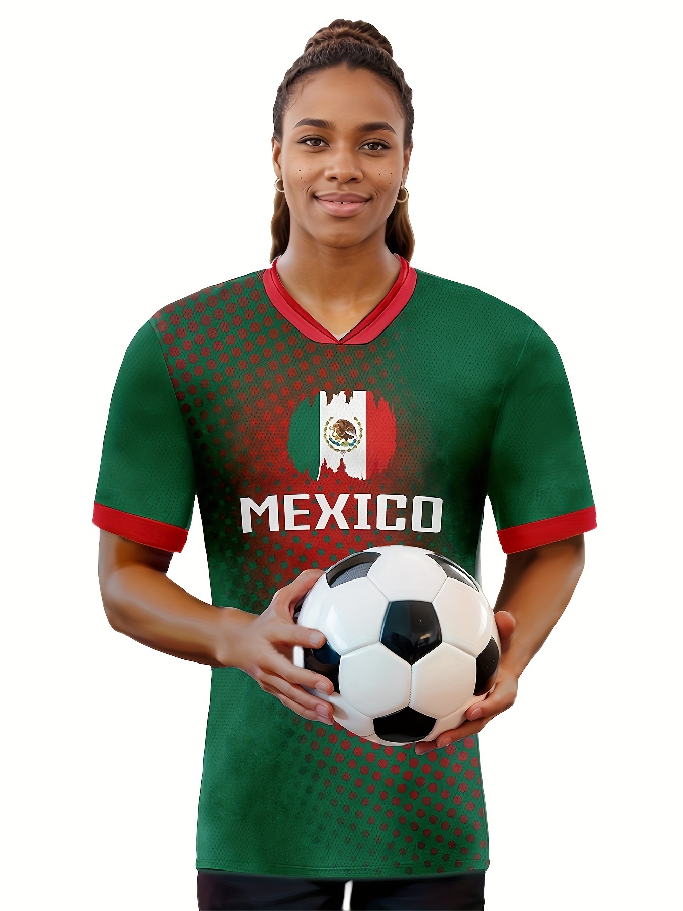 Women's Large Size Professional Sports Fabric Creative Pattern Print Mexico Home Soccer Jersey T-shirt, Soccer Jersey Flag Uniforms Shirts Breathable And Lightweight, Moisture-Wicking, As Gifts For Sports Fans