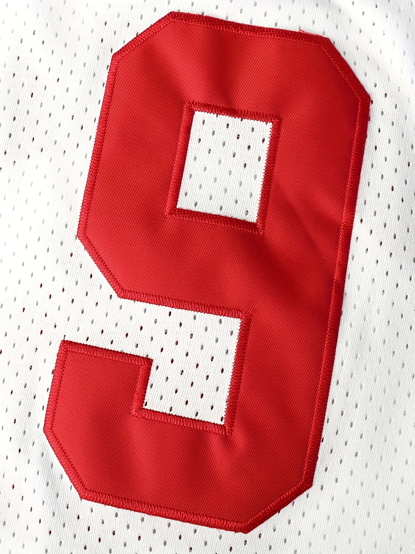 Men's #9 Embroidered Basketball Jersey - White & Red Hillman College Design, Loose Fit, Round Neck, S-3XL, Polyester Knit Fabric for Sports & Casual Wear, Outdoor Activewear | Loose Fit Jersey | Embroidered Detailing