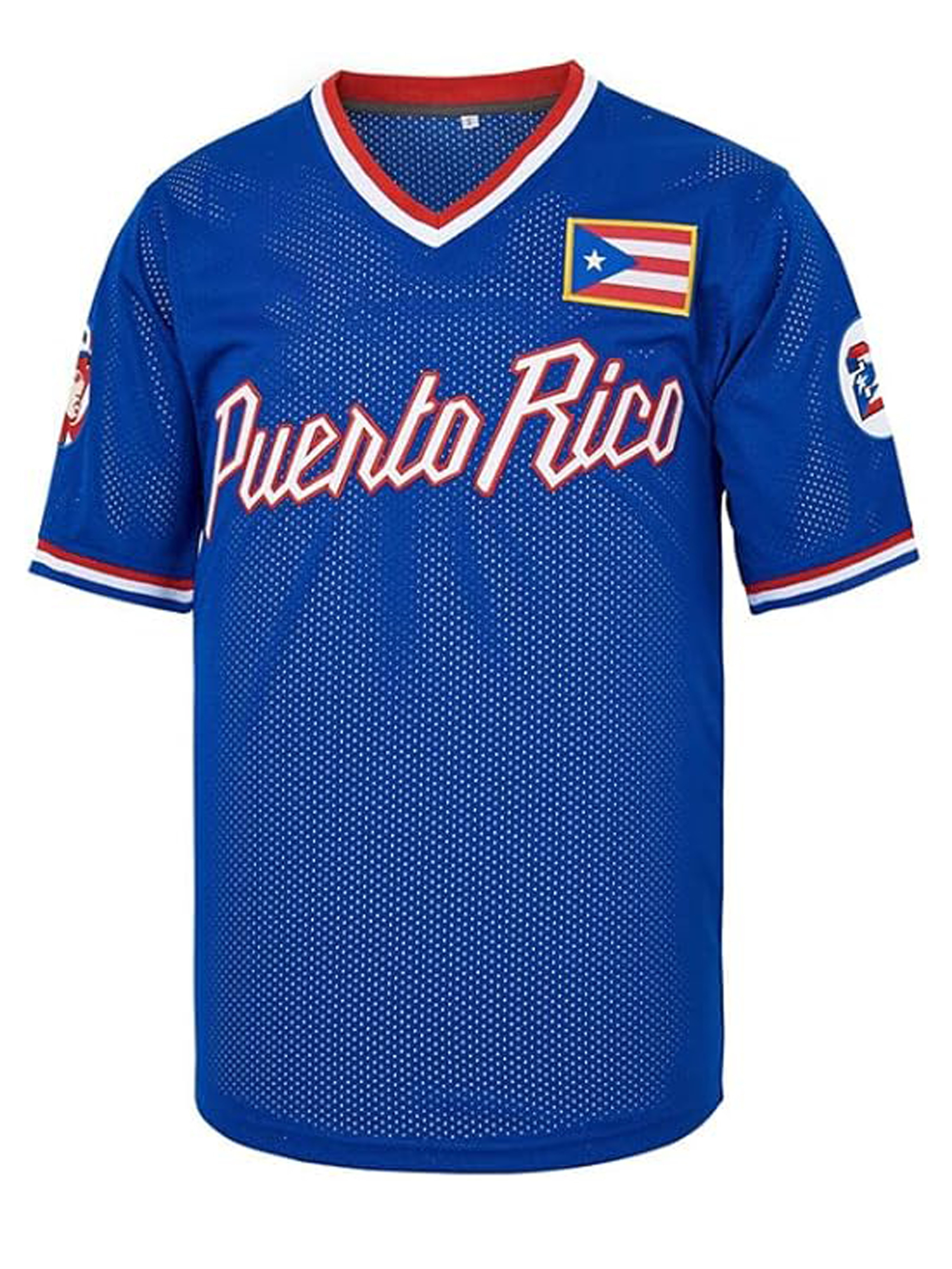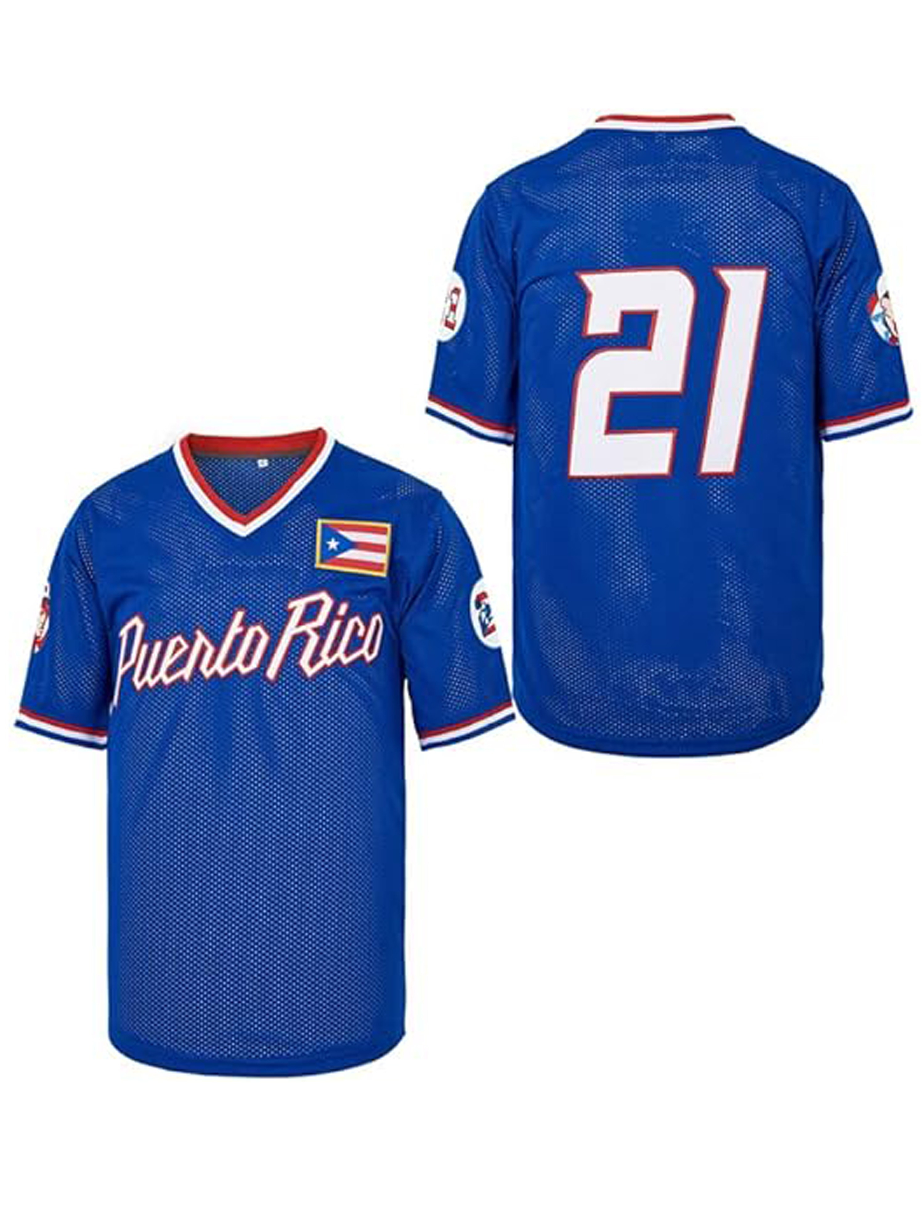 21 Puerto Rico baseball jersey button up shirt men's jersey embroidered men's jersey retro short sleeved V-neck casual sportswear loose game and party