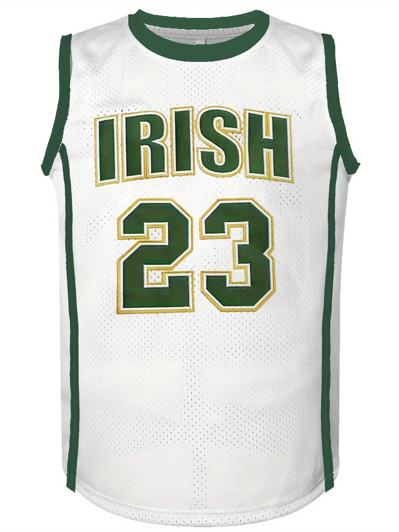Embroidered #23 Irish Basketball Jersey, 100% Polyester Crew Neck Sports Tank Top with Slight Stretch, Unisex Sleeveless Jersey for All Seasons, Casual and Athletic Wear for Parties, Outdoors, and Sport Events