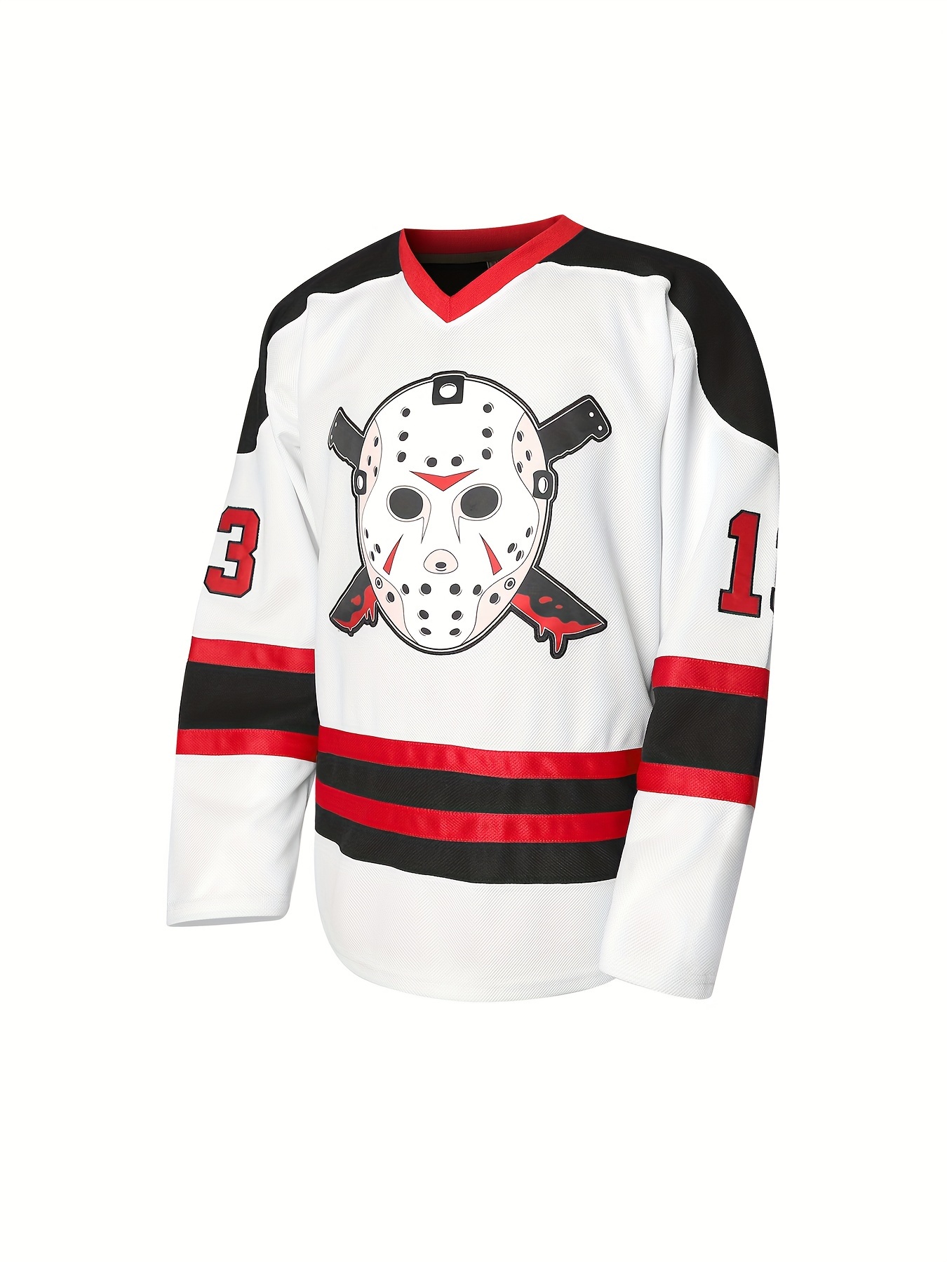 Men'S #13 Embroidered Hockey Jersey - Polyester V-Neck Top with Lettering, Loose Fit, Sports Style for Casual, Training, Team Sports, Holiday, Unity Events - Spring, Summer, Fall, Winter