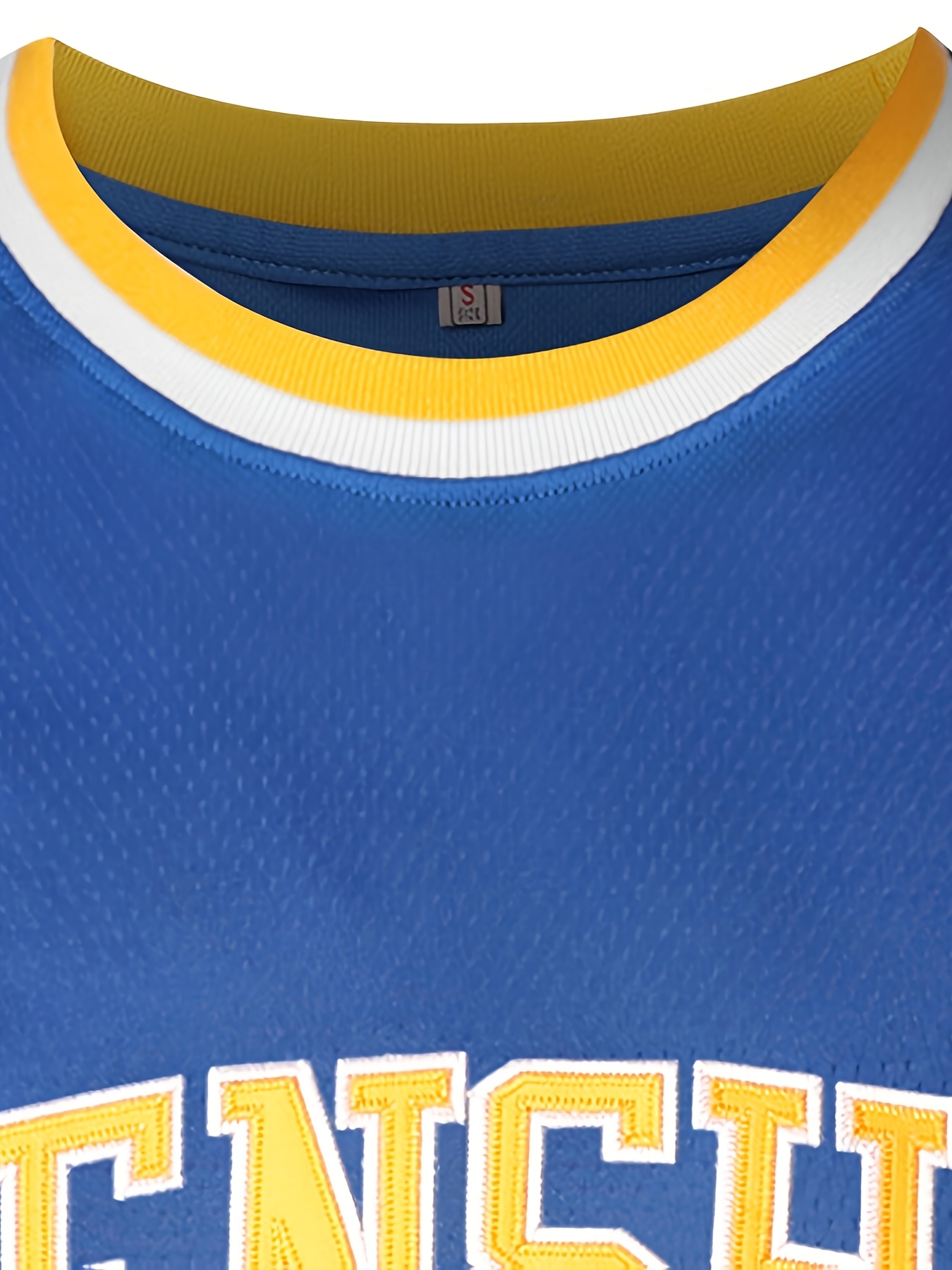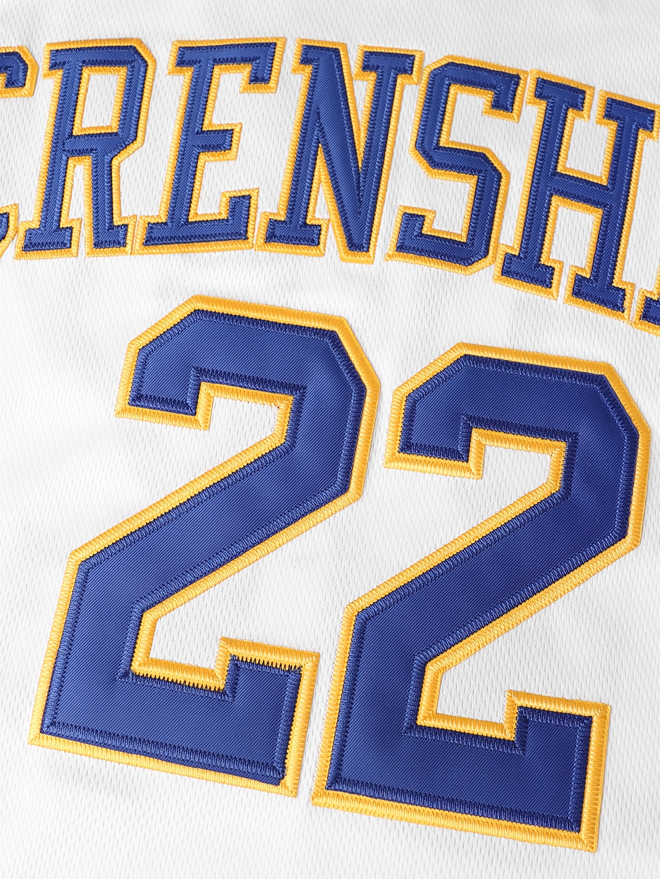 Men's #22 Crenshaw Embroidered Basketball Jersey - Yellow with Blue Trim, V-Neck, Sleeveless Sports Uniform for Streetball, Parties & Casual Wear, Sizes S-XXXL