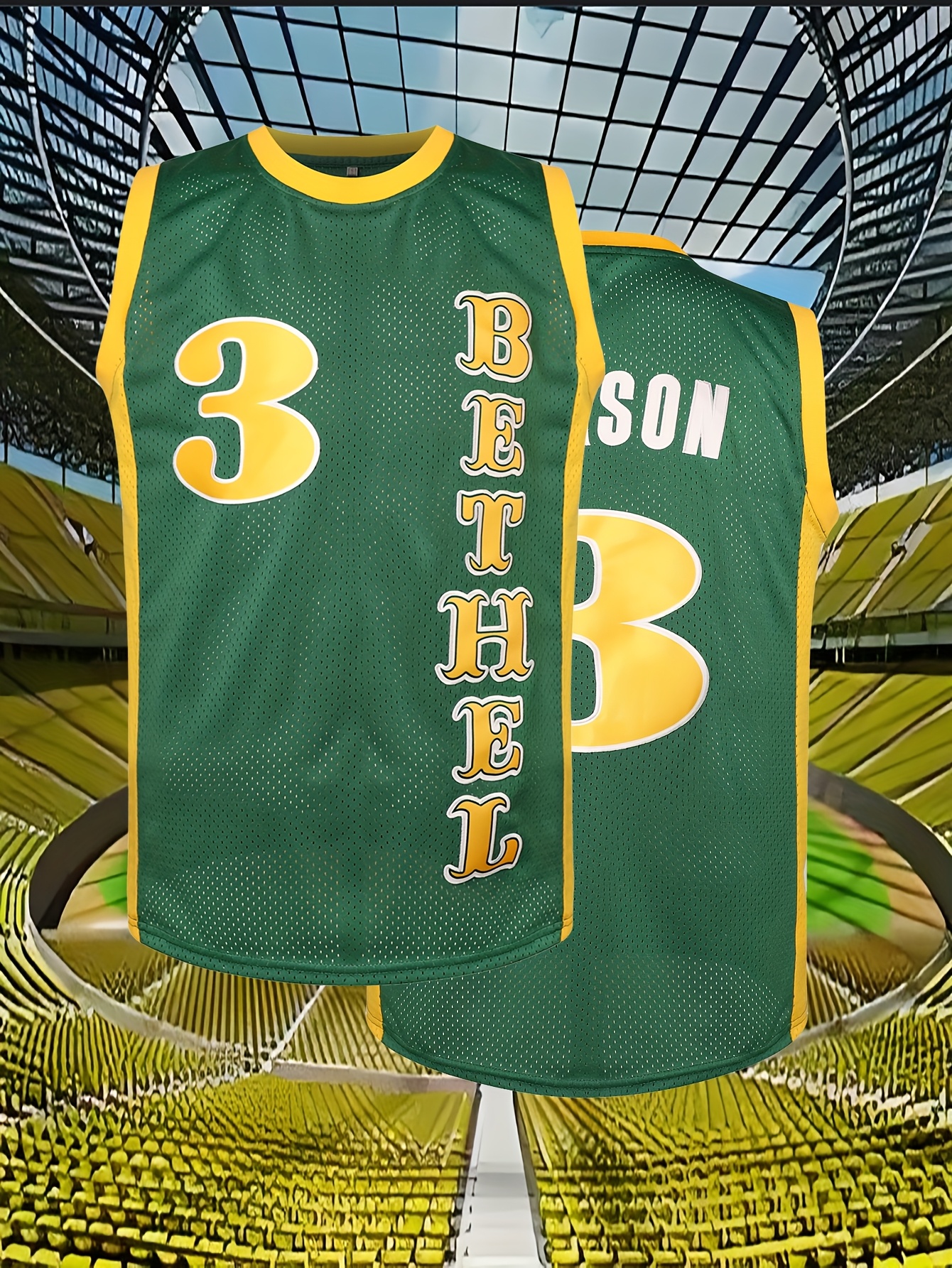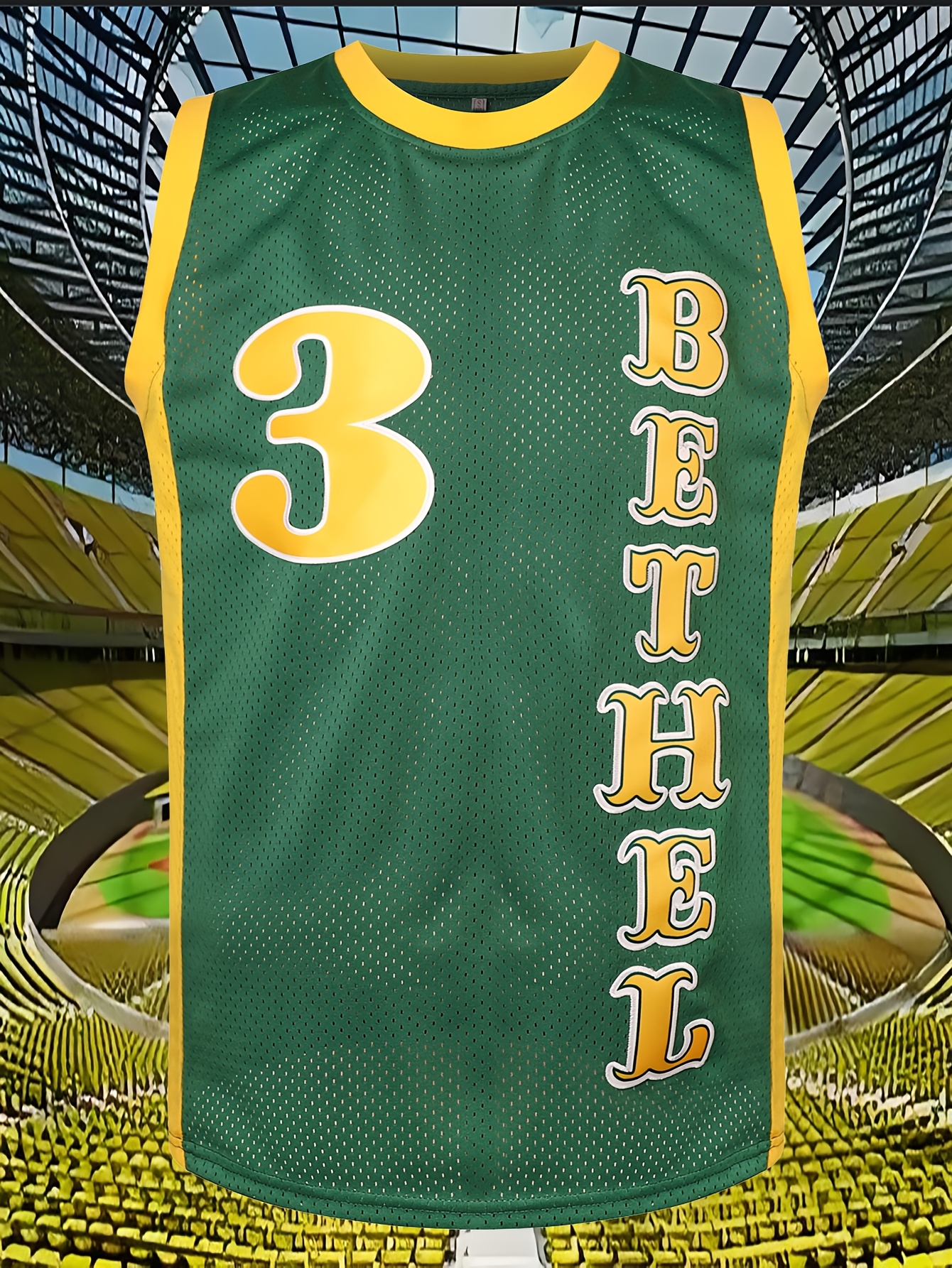 Men's #3 Green & Yellow Basketball Jersey - Breathable Polyester, "BETHEL" & "3", Ideal for Training, Competitions & Casual Wear - Machine Washable, Round Neck, Non-Transparent