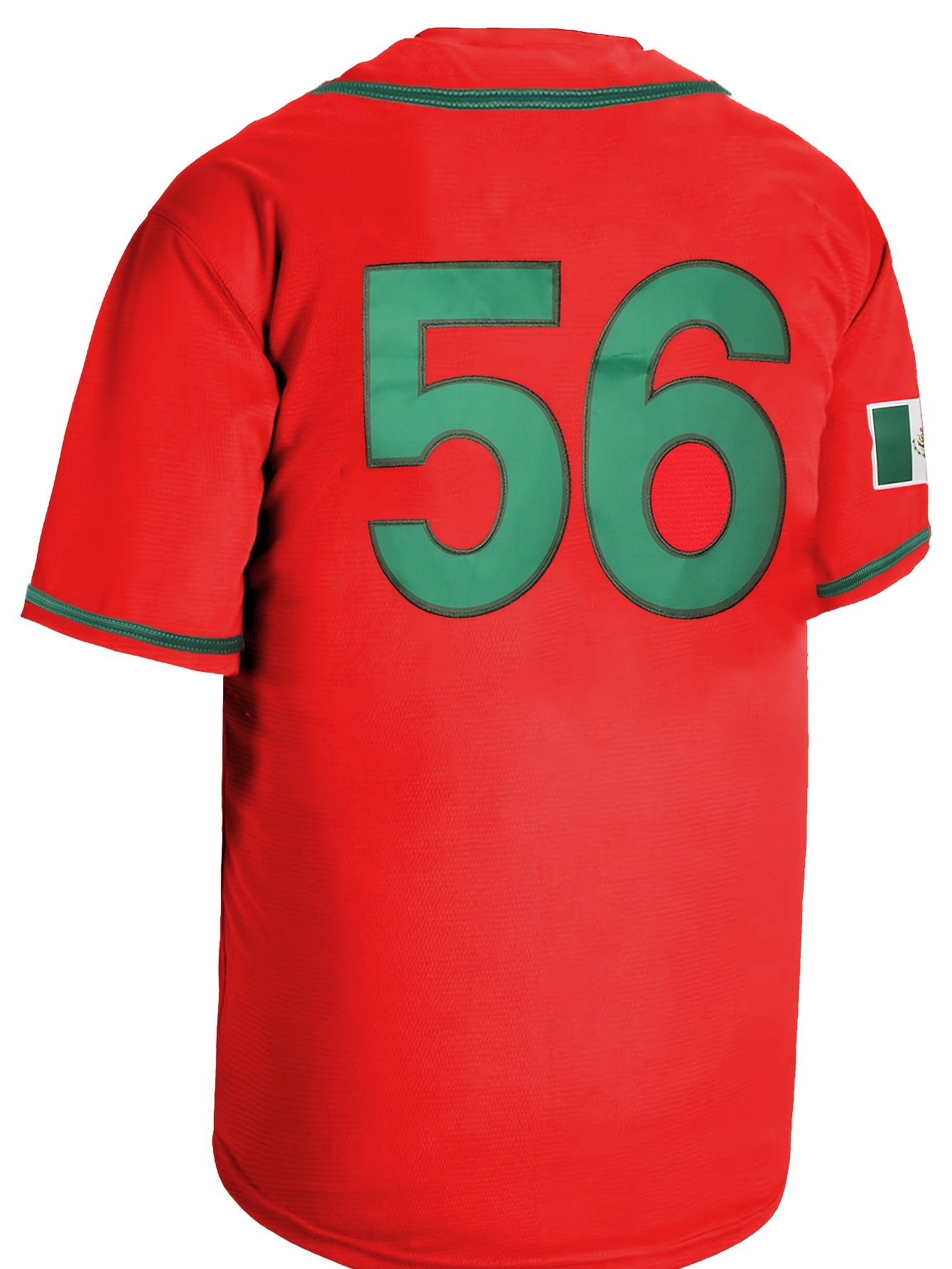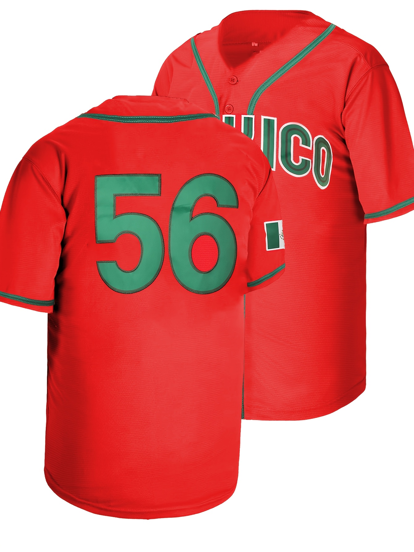 Men's #56 Red Embroidered Baseball Jersey - V-Neck, Short Sleeve, Polyester Sports Shirt for All Seasons