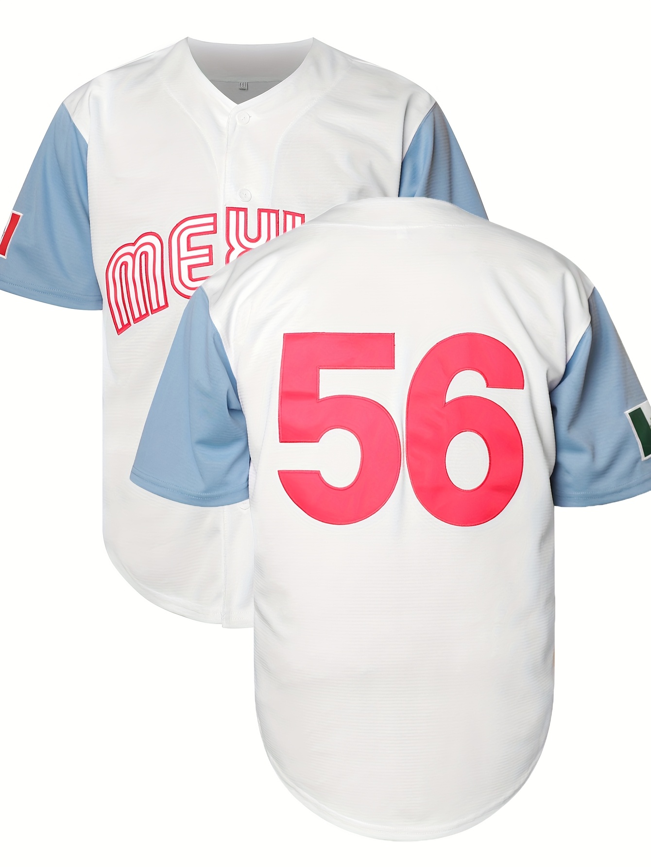 Men's Classic #56 Embroidered Baseball Jersey, Breathable Polyester, V-Neck, Short Sleeve - Ideal for Training & Competition, Machine Washable, White with Blue Accents