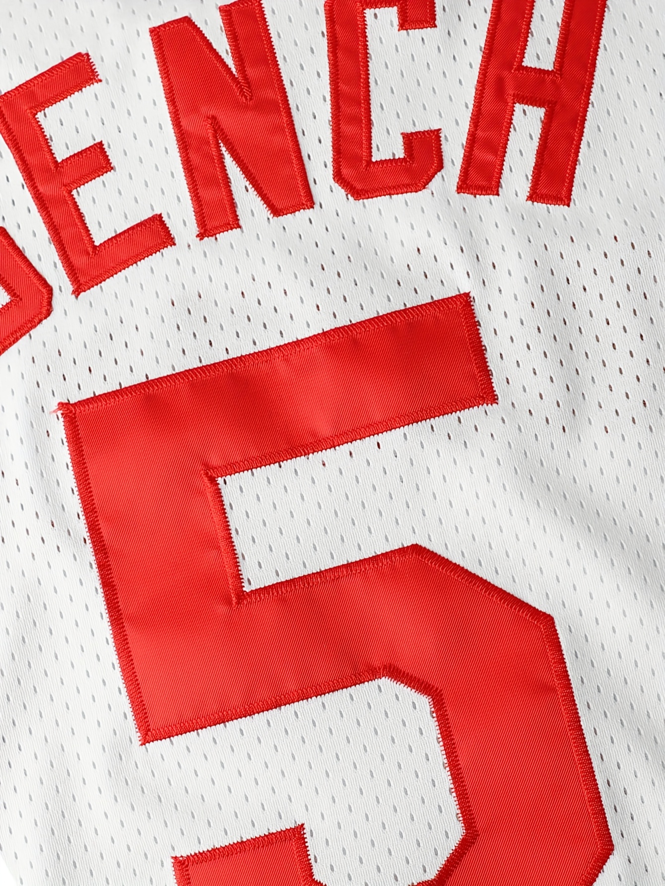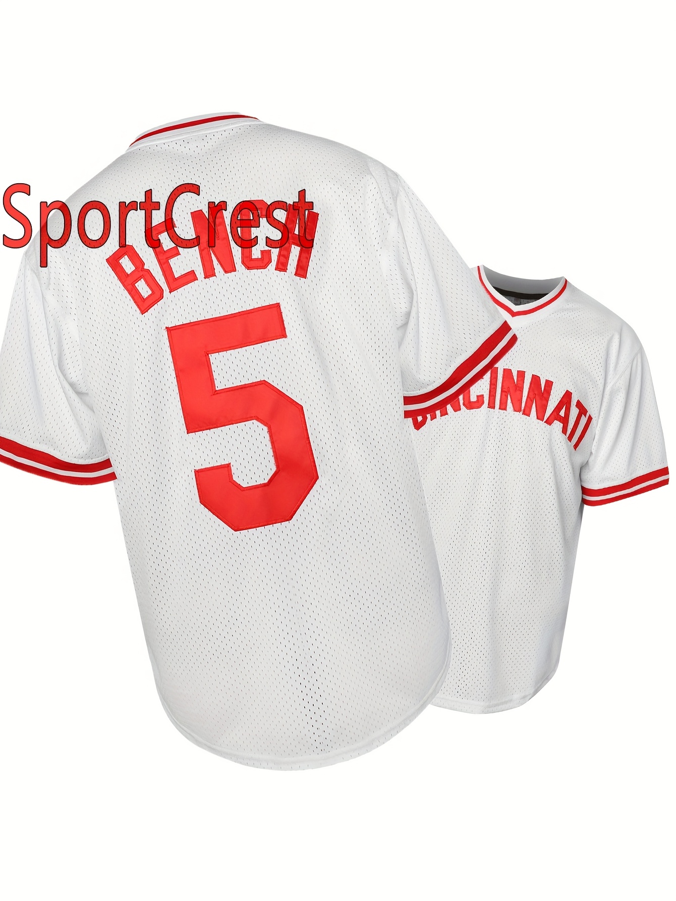 Men's Retro Baseball Jersey - White #5 Embroidered Cincinnati Team Name & Red Stitching, Loose Fit V-Neck Button-Up Short Sleeve, All-Season Machine Washable Polyester Shirt for Sports, Casual & Holidays (Sizes S-3XL), Best for Christmas