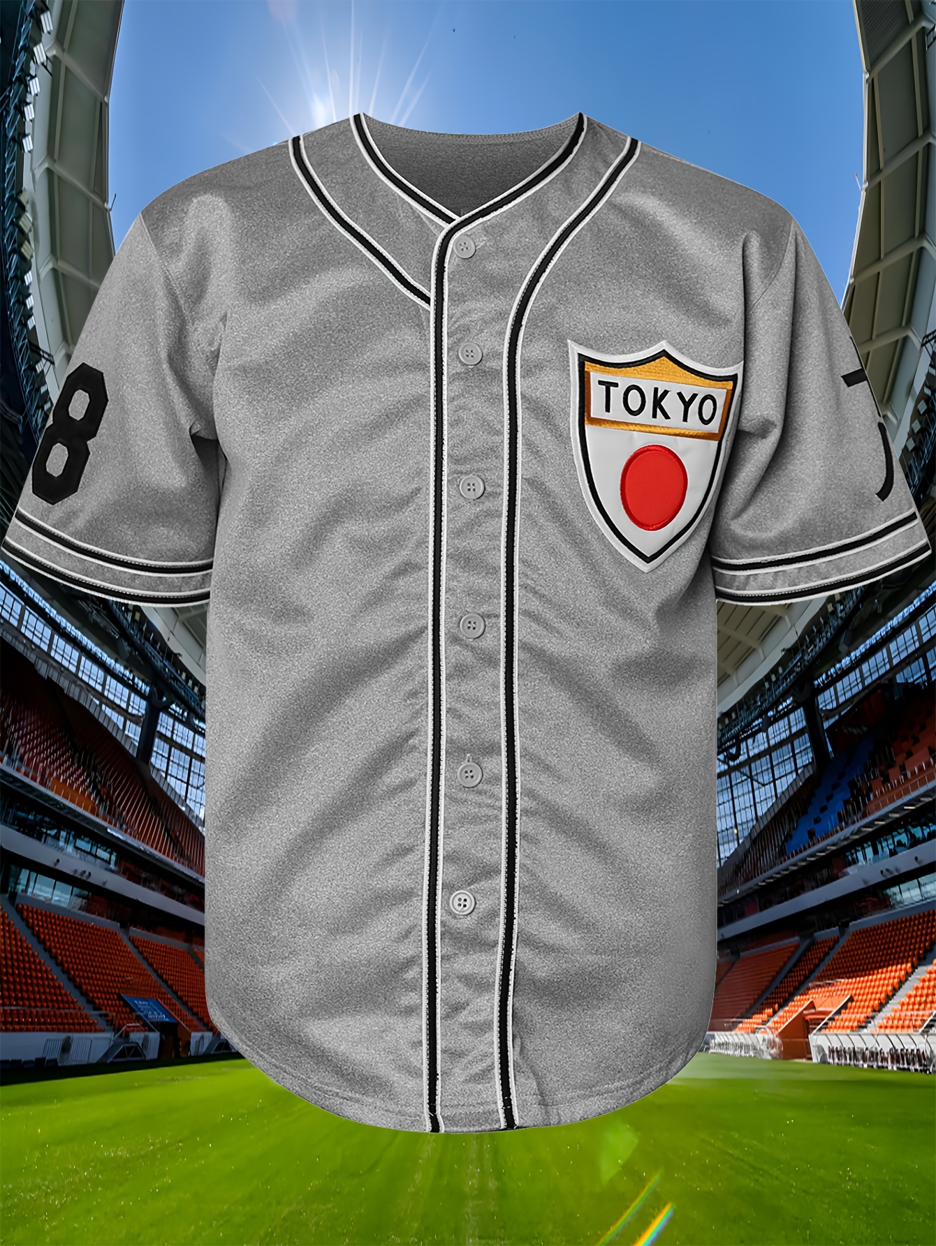 Men's Tokyo #18 Baseball Jersey, 100% Polyester V-Neck Sports Shirt, Letter & Number, Loose Fit for Casual & Team Activities, Spring/Summer/Fall - Sizes S-XXXL