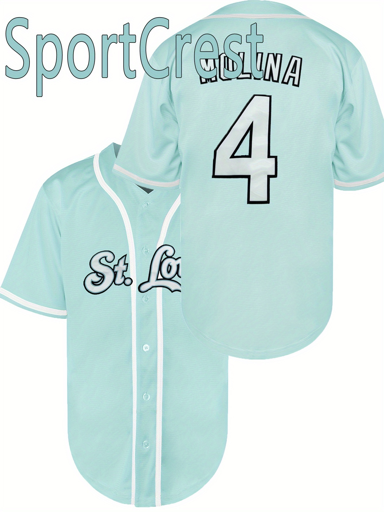 Sports Classic Letter & Number #4 Embroidered Design, Men'S Breathable Baseball Jersey, Short Sleeve Shirt For Training And Competition
