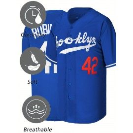 Hot #42 Blue Baseball Jersey Stitched Polyester Men'S Retro Baseball Shirt Button Short Sleeved Baseball Top S-3XL Hip Hop Clothes