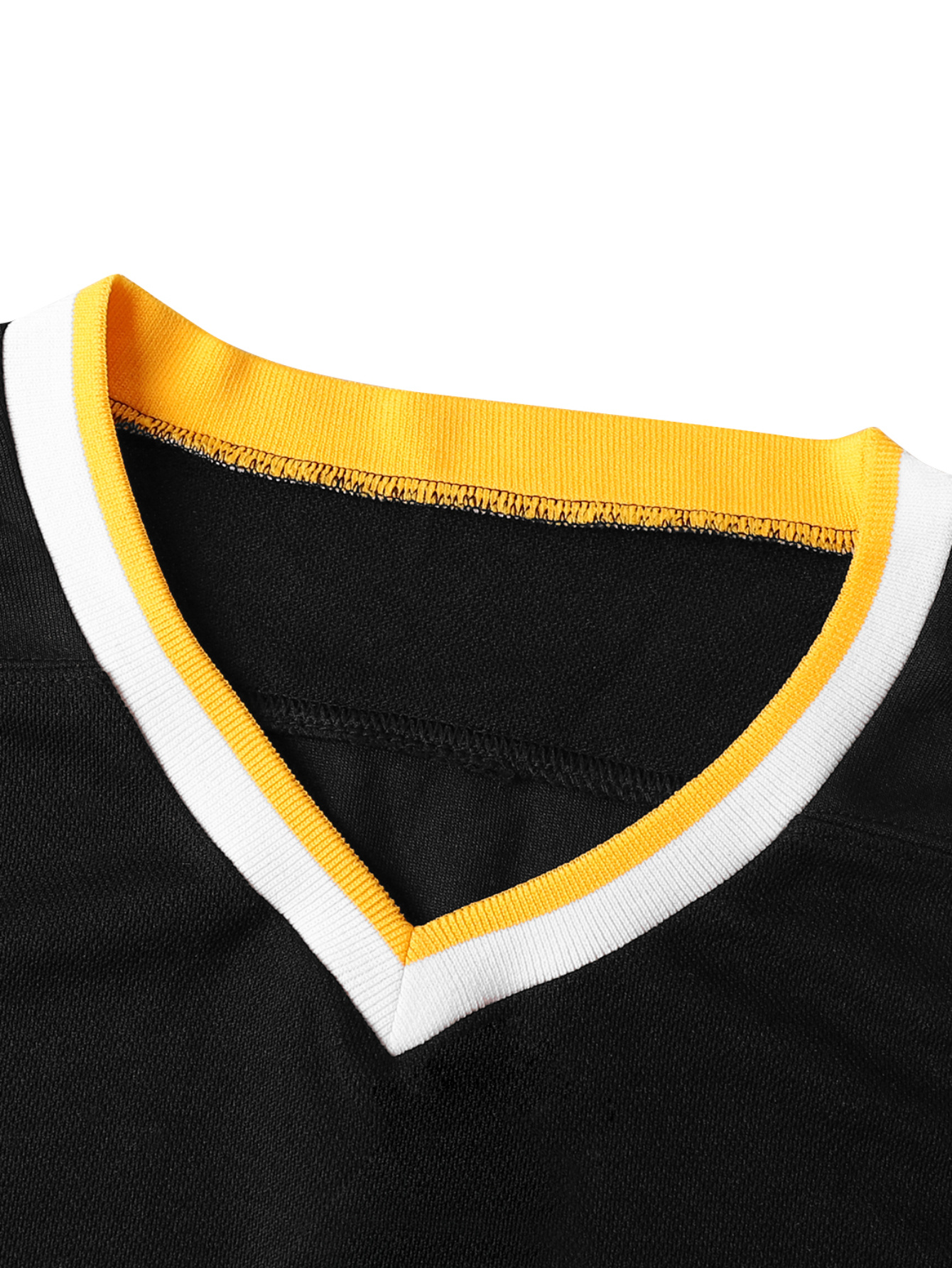 Men's Colorblock Ice Hockey Sweater, Loose Embroidered Long Sleeve, Sporty, Fashionable Casual, Breathable Streetwear